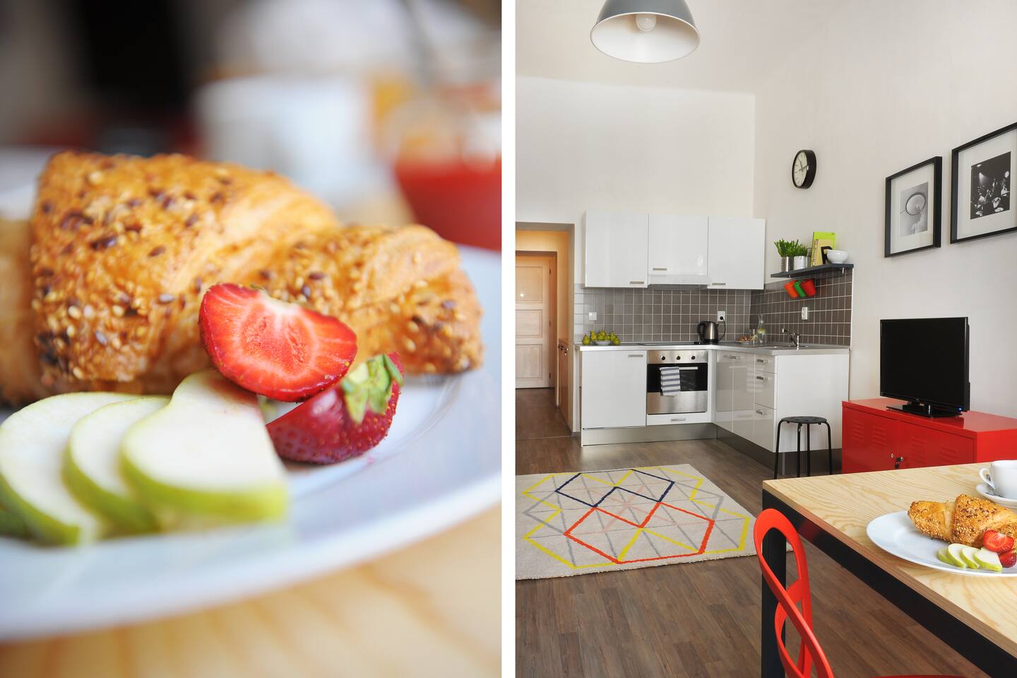 The apartment is ideal for people who would like to experience the atmosphere of the vibrant city centre and at the same time they search for a nice and quiet place to stay. Although the apartment is located in the prominent central part of the city, it is situated in a peaceful and quiet street, which is a part of a pedestrian zone with a very small traffic.