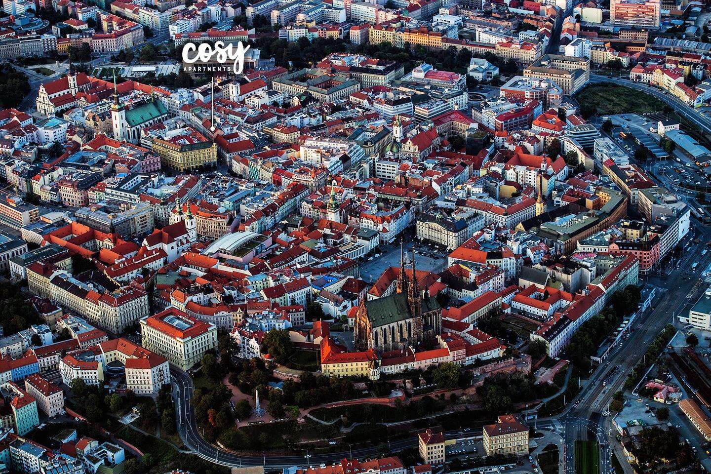 Only a few steps from the apartment you may find a number of top quality restaurants and cafes, popular clubs, bars and places where the locals pop round and debate over a glass of dewed beer. You can drop in just in your slippers for the morning coffee and newspaper – you only need to take the elevator down to the nearest cafe, which is a part of the house you are going to live in. Many of wonderful sightseeing and cultural institutions are literally round the corner (i.e. St. Jacob’s Church, The Špilberk Castle, The Moravian Gallery, Janáček’s or Mahen’s Theatres).